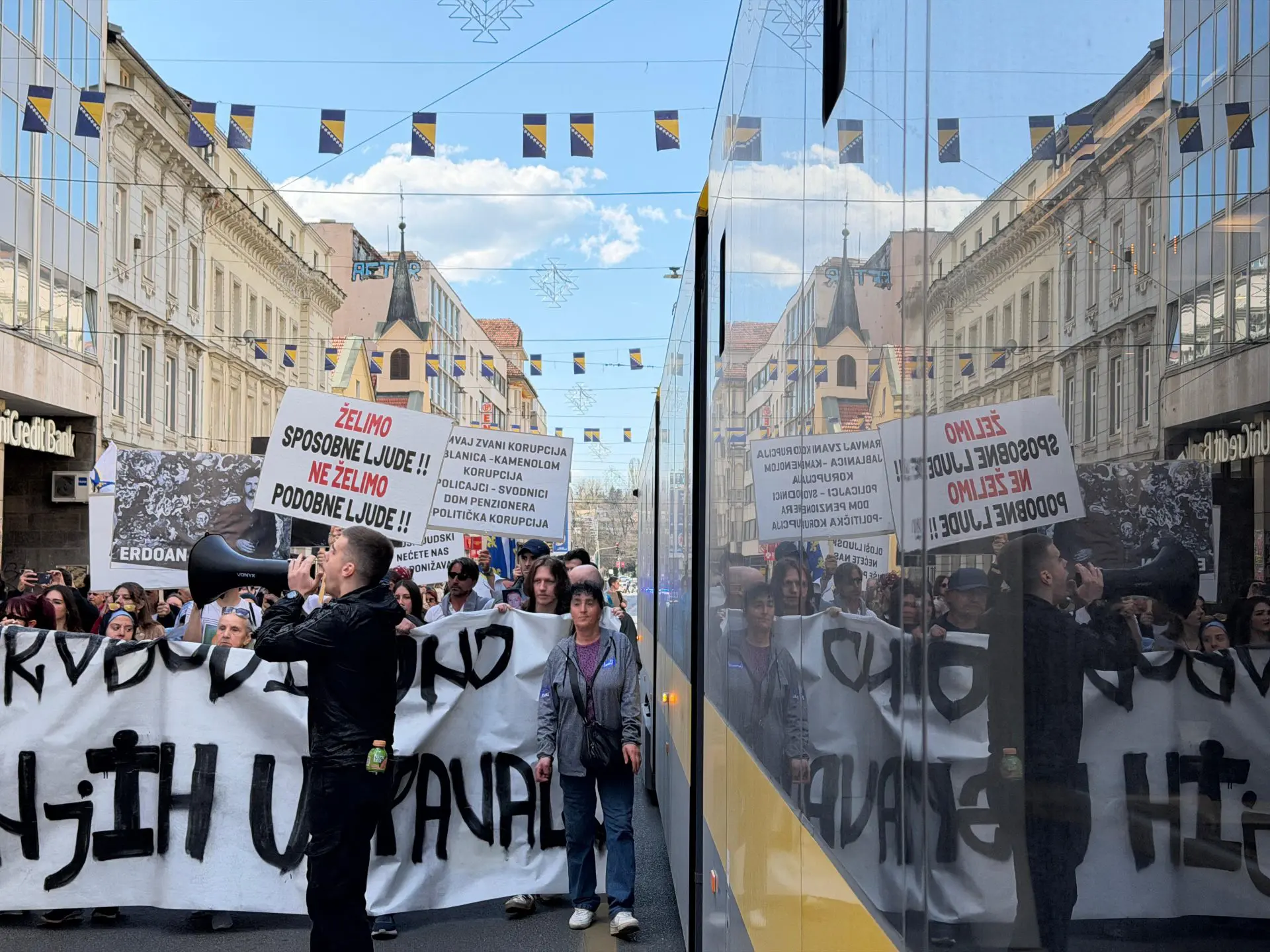 „Izlazite napolje“, bila je najčešća parola koja se čula tokom dvočasovnih protesta nekoliko stotina građana koji su deseti put izašli na ulice nakon što je u tramvajskoj nesreći 12. februara stradao student Erdoan Morankić.