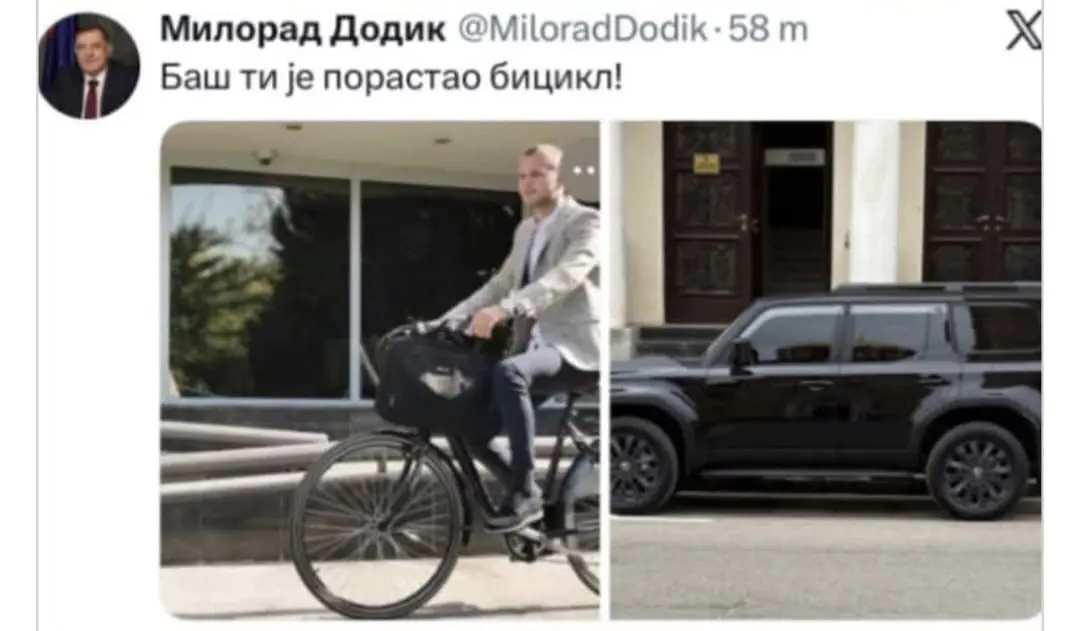 Počelo objavom Dodika, koji je komentarisao fotografiju gradonačelnika Banjaluke na biciklu, i džip parkiran ispred Geadske uprave, poručivši: