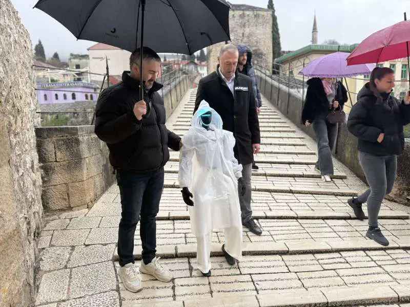Roby je u Mostaru simbolično prošetao Starim mostom, povezujući tradiciju i budućnost, a zatim je u parku Zrinjevac obišao statuu Brucea Leeja, kao hommage popularnoj kulturi i gradu susreta različitih kultura.
