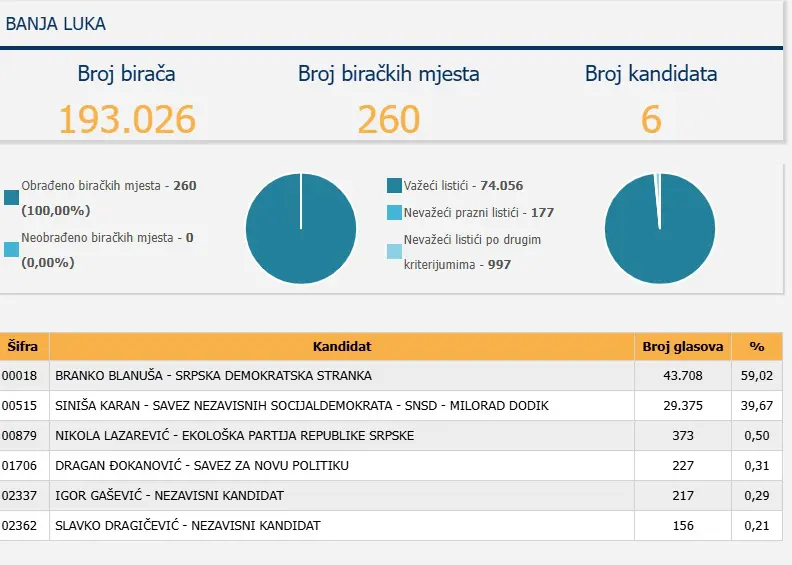 Posebno je zanimljivo pogledati rezultate u najvećim urbanim sredinama, jer one često pokazuju drugačiju sliku od manjih opština i ruralnih krajeva. Biračko tijelo u većim gradovima je raznovrsnije, politička ponuda šira, a kampanje intenzivnije – pa se tu možda i najbolje vidi odnos snaga između vlasti i opozicije.