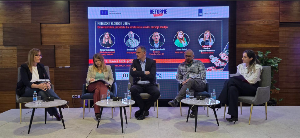 Konferenciju “Medijske slobode u BiH: Od reformskih prioriteta ka strateškom okviru razvoja medija” organizovali su Mediacentar Sarajevo, Udruženje “Jabiheu” i Savjet za štampu i online medije, uz podršku Evropske unije i Ambasade Kraljevine Holandije u BiH.