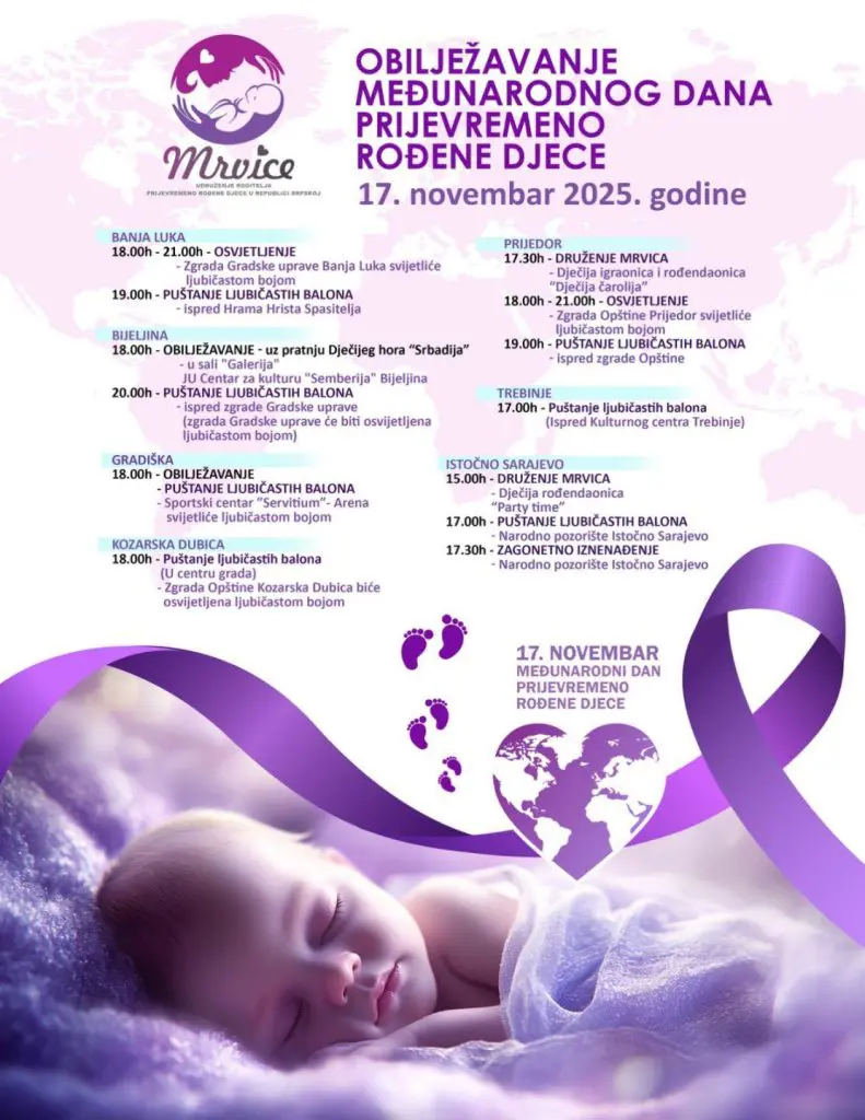 Međunarodni dan prijevremeno rođene djece obilježava se svake godine 17. novembra. Danas su planirane rane aktivnosti u više gradova u Republici Srpskoj.