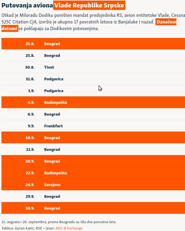 Do zaključenja teksta, iz Vlade Republike Srpske nije odgovoreno na upit RSE da li je Dodik koristio njihov avion prilikom ovih letova.