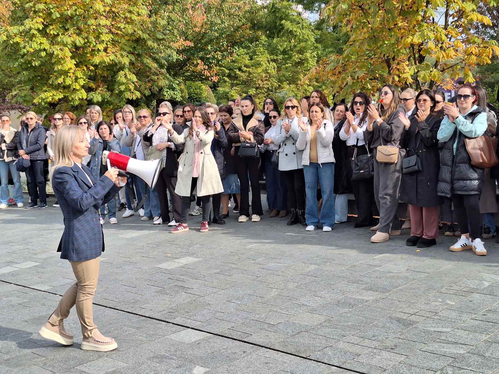 „Naši zahtjevi su jasni i poznati još od juna 2024. godine. Tražimo povećanje plata od 20% za sve zaposlene u Centru za predškolsko vaspitanje – za vaspitače, stručne saradnike, administraciju, kuvare, spremačice, vozače i kućne majstore. Svi smo danas ovdje i mislim da broj ljudi koji stoji ispred vas dovoljno govori koliko smo ujedinjeni“, kazala je.