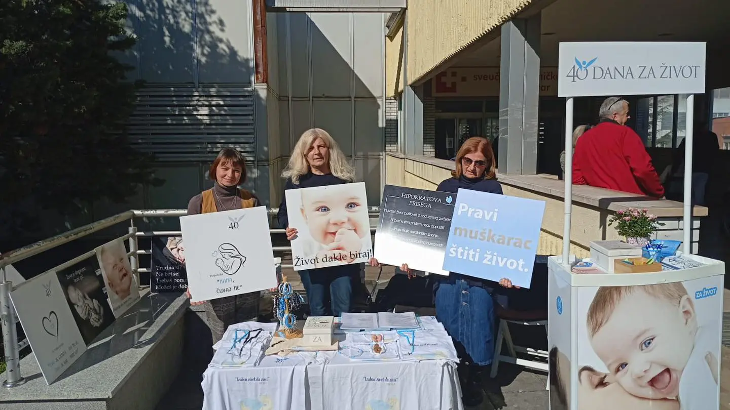 Pod sloganom „Izaberi život da živiš“ nametljivo i nezaobilazno stoje na ulazu u Sveučilišnu-kliničku bolnicu Mostar. Za štandom je nekoliko muškaraca i žena, a u objavama na društvenim mrežama vidljivo je da propagandne materijale drže i djeca.