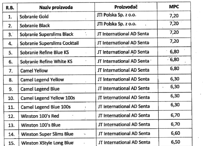 Prema informacijama Uprave za indirektno oporezivanje, dobili su zahtjeve za novim maloprodajnim cijenama cigareta od tri distributera.