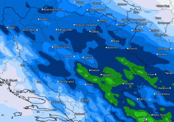 Iako se ne očekuju velike padavine (većinom od 2 do 10 l/m²), stanovnici Sarajevsko-romanijske regije, gornjeg Podrinja te sjeverne Hercegovine sutra ujutru mogu očekivati “dekorativni” snježni pokrivač i u brdskim predjelima.