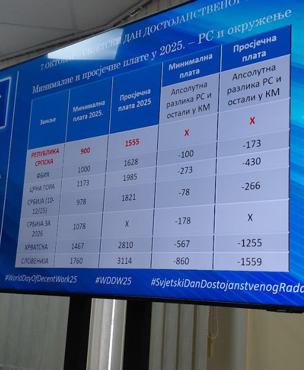 Goran Stanković, predsjednik Saveza sindikata Republike Srpske, ističe da je najniža plata u RS već dvije godine zamrznuta i iznosi 900 KM za nekvalifilovane radnike.