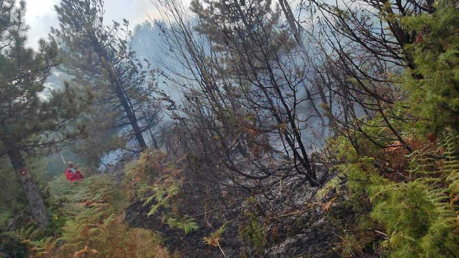 “Trenutno gori visoka šuma – borovina, bukovina. Unazad sat vremena, nakon odlaska vatrogasaca, požar se proširio drugim krajem stijena koje se vežu za livade gdje se nalaze i dvije stare kuće. Niko u njima ne živi”, kaže nam Zulanović.