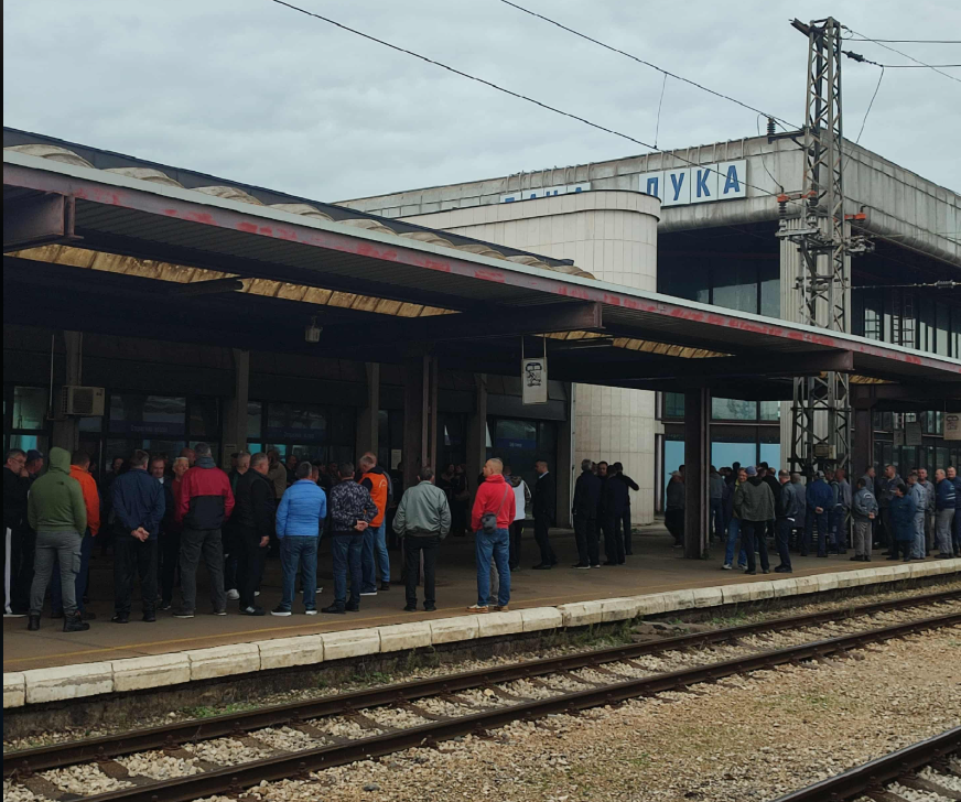 Radnici su se okupili u 7 časova na peronima stanica Doboj, Banjaluka, Omarska, Prijedor, Novi Grad i drugim mjestima.