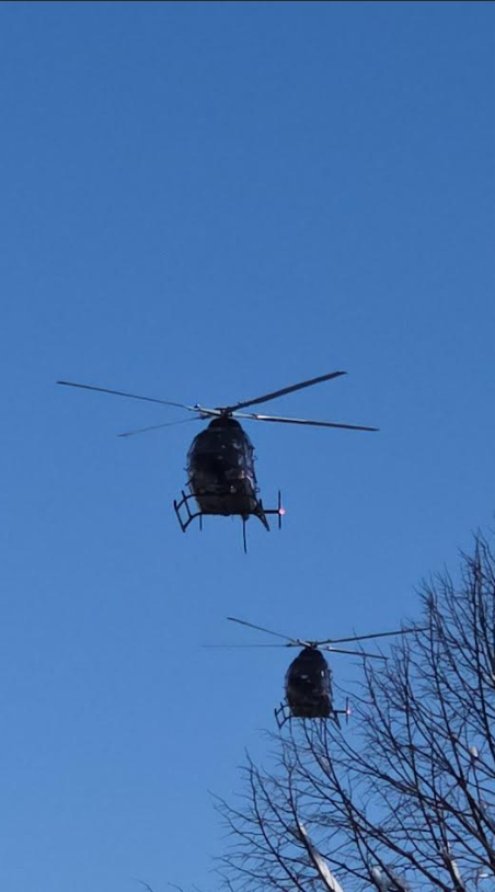 Na ulicama grada vidljive su policijske patrole, kao i vozila jedinica “Vihori” i “Despoti”, dok iznad grada lete helikopteri.