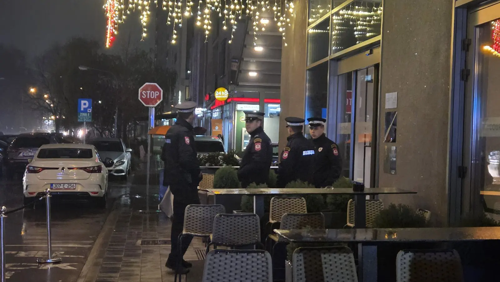 Kako javlja N1, ispred hotela, osim pripadnika MUP-a RS, okupila se i grupica ljudi koji su nosili obilježja entiteta RS i uzvikivali: “Srbija, Srbija!”.
