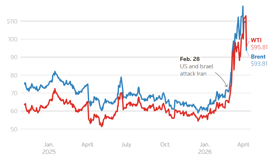 Uprkos tome, cijene su i dalje više nego prije početka sukoba 28. februara, kada se nafta prodavala za oko 70 dolara po barelu.
