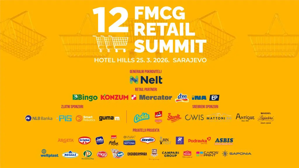Sarajevo, 16. mart 2026. – Industrija robe široke potrošnje ulazi u novu fazu transformacije, potrošači mijenjaju navike, digitalne tehnologije redefinišu način poslovanja, a konkurencija na policama trgovina postaje intenzivnija nego ikada. Upravo zato će 12. FMCG Retail Summit, koji će biti održan 25. marta u hotelu Hills u Sarajevu, okupiti vodeće lidere i stručnjake industrije kako bi govorili o centralnoj temi ovogodišnje konferencije: “What’s Next on the Shelf?”