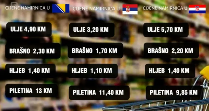 I to je jedan od rijetkih primjera kojima se možemo pohvaliti. Naša zemlja bilježi najveći rast cijena hrane u usporedbi sa susjedima, ali i nekim evropskim zemljama. Primjera radi, ulje i piletina znatno su skuplji nego u Srbiji. Potrošačka korpa u julu skuplja je za 30 maraka u odnosu na juni. No, zbog kontinuiranog rasta cijena izvjesno je da će biti sve praznija.