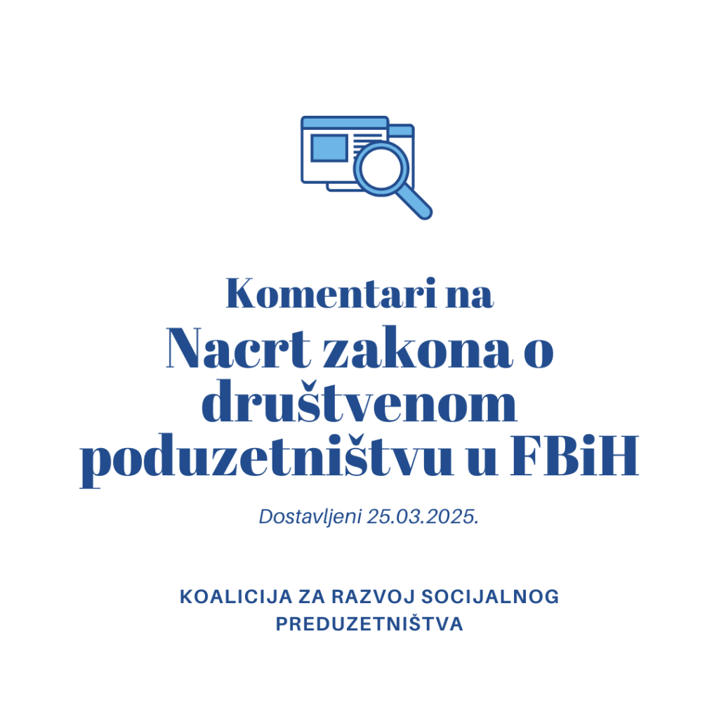 Aktivisti Koalicije za razvoj socijalnog preduzetništva, dana 25.03.2025, uputili su, u okviru procedure javne rasprave Federalnom ministarstvu razvoja, poduzetništva i obrta, komentare na Nacrt zakona o društvenom poduzetništvu u FBiH.