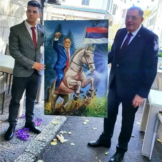 Slikar godine: neznani Van Gog ovjekovječio Predsjednika SNSD-a u jurišu na bijelome konju i ala Tramp crvenoj kravati. Nije vala ni Dodiku lako.
