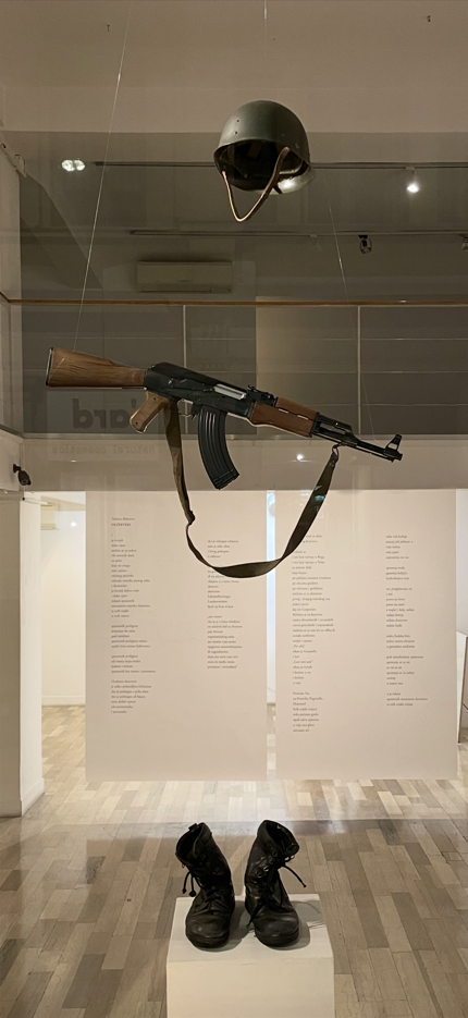 Trideset godina nakon potpisivanja Dejtonskog mirovnog sporazuma, u Zagrebu, Beogradu i Sarajevu predstavljena je neobična umjetnička intervencija: čizme, puška i šljem koji stoje sami od sebe — bez čovjeka koji bi ih nosio. Upravo to odsustvo čovjeka nosi snažnu antiratnu poruku koju u cijeloj regiji promovišu književnica i prevoditeljica Đurđica Čilić i svestrani umjetnik Srđan Ćešić, kroz mirovnu inicijativu „Spomenik dezerteru“.