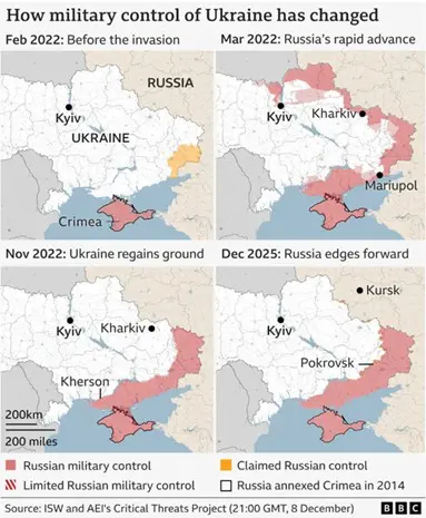 Za pet godina rata putinova vojska je reterirala od blitzkrieg pokušaja zauzimanja Kijeva, do iznurujućih borbi za sela u istočnoj Ukrajini. Dodatno poniženje je da se rat prenio i na teritoriju Rusije: udari ukrajinskih dronova po naftnim i vojnim postrojenjima postali su svakodnevica u Rusiji, i to ne samo u pograničnim dijelovima, već dobacuju i do Moskve, a ofanzivom na Kursk 2024. opalilu su novi šamar Kremlju jer je prvi put nakon WW2 dio ruske teritorije je bio okupiran.