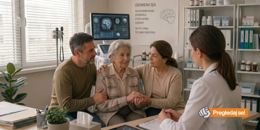 Dijagnoza: Rano prepoznavanje simptoma jedan je od najvažnijih elemenata u pristupu demenciji. Iako ne postoji oštra granica između “uobičajenog” zaboravljanja i početka demencije, određeni znakovi zahtijevaju posebnu pažnju. Učestalo zaboravljanje nedavnih događaja, ponavljanje istih pitanja, dezorijentacija u prostoru i vremenu, poteškoće u komunikaciji, promjene raspoloženja i povlačenje iz uobičajenih aktivnosti nisu tipične karakteristike zdravog starenja i zahtijevaju stručnu procjenu.