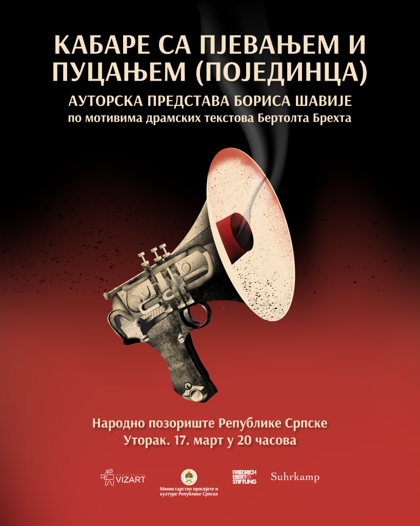 Na Velikoj sceni Narodnog pozorišta Republike Srpske u utorak, 17. marta, s početkom u 20 časova biće izvedena monodrama „Kabare sa pjevanjem i pucanjem (pojedinca)“, autora i glumca Borisa Šavije.