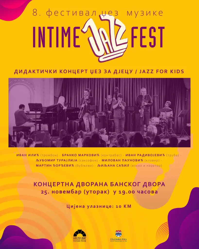 Drugo veče 8. festivala džez muzike INTIME JAZZ FEST, utorak, 25. novembra 2025. godine u 19.00 časova, će biti u znaku najmlađih ljubitelja muzike. U Koncertnoj dvorani Banskog dvora, održaće se Didaktički koncert „DŽez za djecu / Jazz for Kids“.