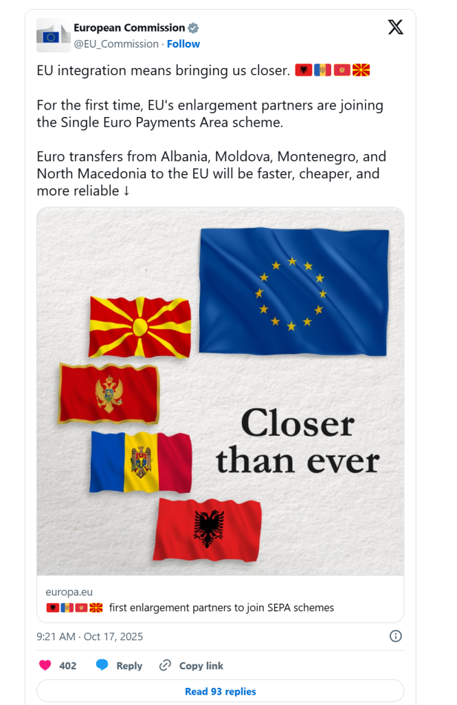 Evropska komisija saopštila je 16. oktobra da je odobrila nova finansijska sredstva za Albaniju, Crnu Goru i Sjevernu Makedoniju u okviru Plana rasta za Zapadni Balkan, ključnog programa čiji je cilj da ubrza ekonomski razvoj i približavanje regiona Evropskoj uniji.