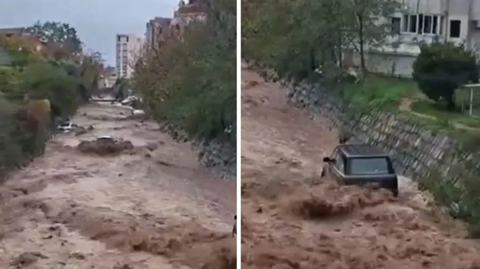 Rijeka Grđevica, koja tokom većeg dijela godine presuši i često se koristi kao improvizovani parking, u samo nekoliko sati narasla je do nivoa koji je potopio vozila ostavljena u njenom koritu.