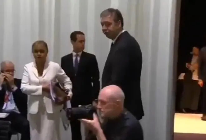 Vučić se okretao, vidno ljut, tražeći nekoga tko bi mu pomogao da se smjesti. Izgledalo je kao da organizatori samita nisu imali pojma što bi s njim.