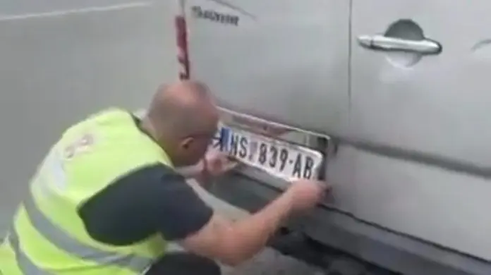 Na snimku koji je objavio „PMF u blokadi“, vidi se saobraćajni inspektor kako skida tablice sa kombija, dok putnici stoje pored puta.
