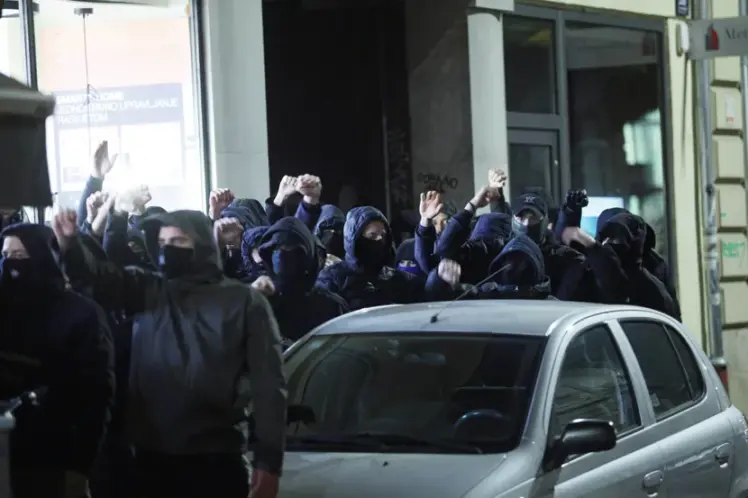 Nakon jučerašnjeg pokušaja da se spriječi održavanje Dana srpske kulture u Preradovićevoj ulici u Zagrebu, reagovalo je i Srpsko kulturno društvo Prosvjeta. Ispred njihovih prostorija, u kojima se održavalo otvaranje izložbe „Efemeris – legal Dejana Medakovića“, grupa od pedesetak maskiranih muškaraca pjevala je „O Hrvatska, o Hrvatska, nezavisna država“ i „Zovi, samo zovi“ i vrijeđajući novinarke i novinare pokušala da zastraši posjetioce izložbe.