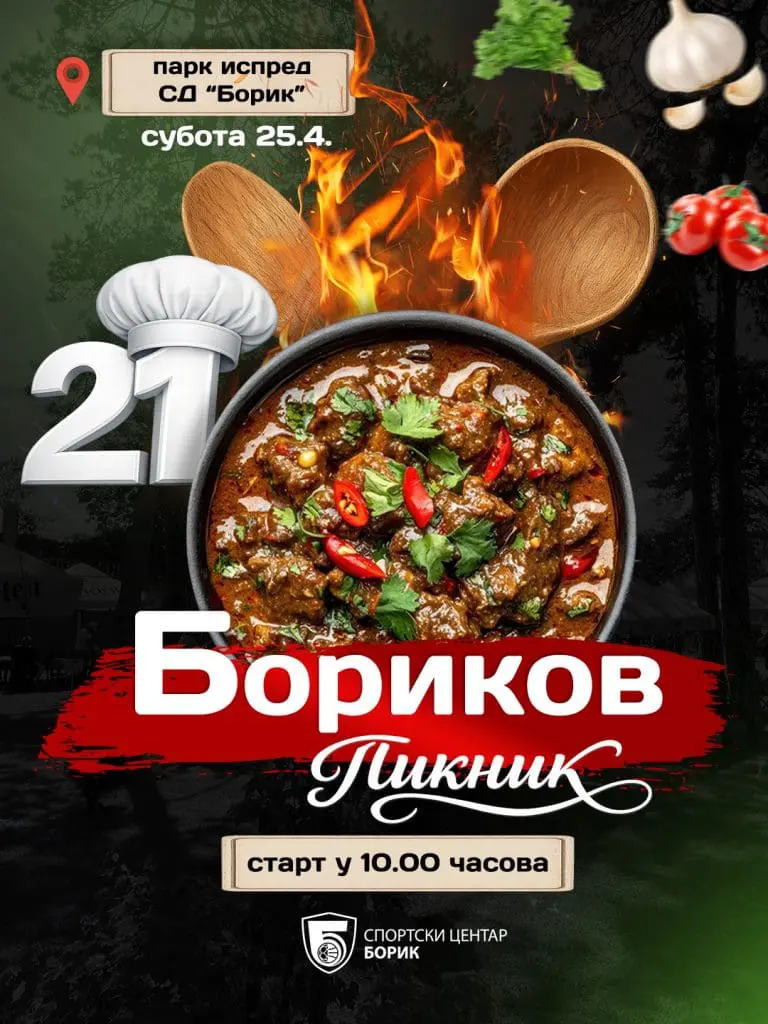 Sportski centar Borik organizuje 21. Borikov piknik, koji će biti održan u subotu, 25. aprila, u parku ispred SD „Borik“, sa početkom u 10.00 časova.
