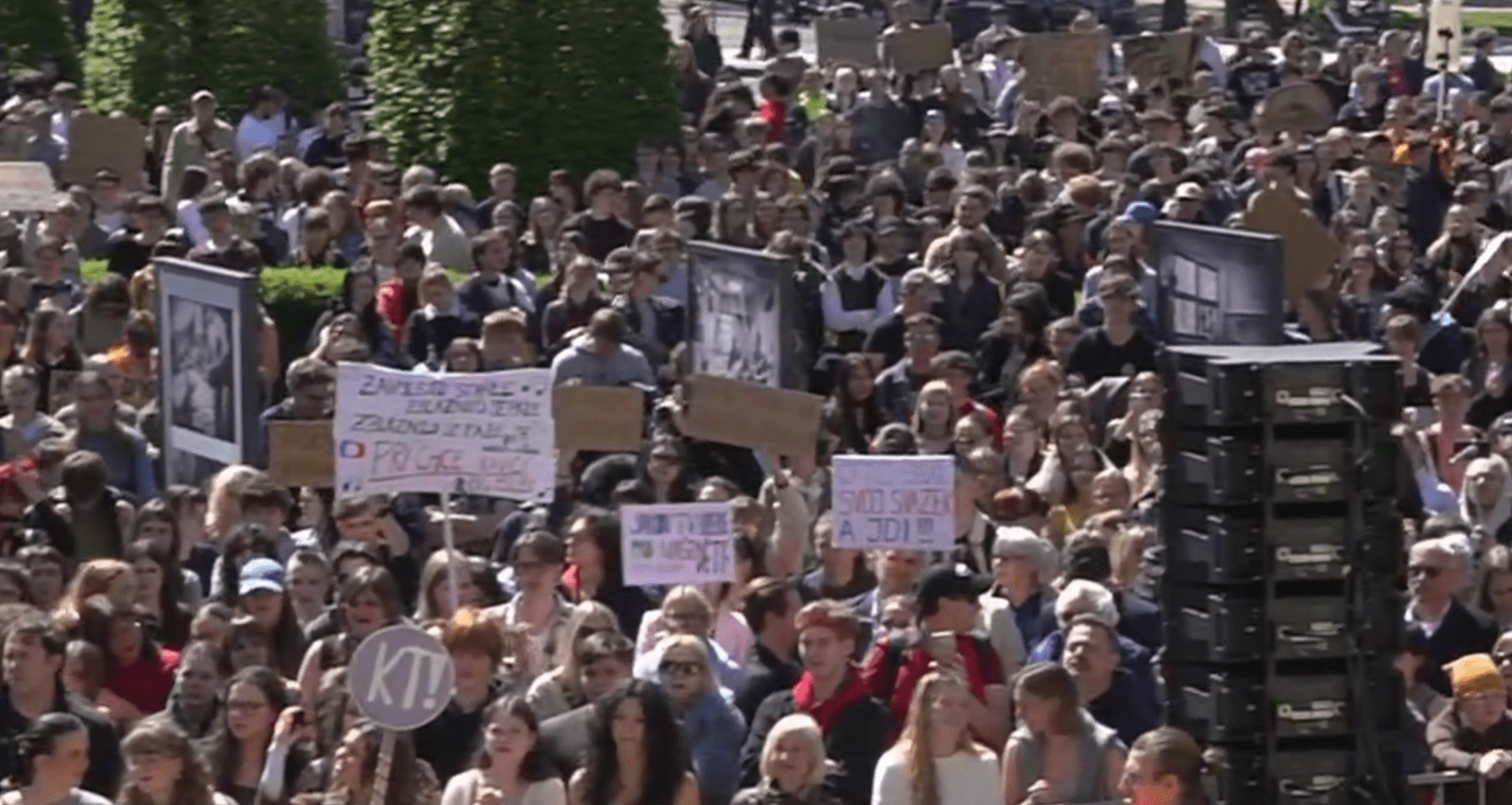 Studenti su akciju započeli simbolično napuštanjem nastave u 11:59, nakon čega su gotovo ispunili Trg Jana Palacha. Nosili su transparente s porukama poput „Ruke dalje od medija“, „Želimo žive, a ne mrtve medije“, „Kultura naprijed“ i „Želimo nezavisne medije“. Na protestu su govorili i glavni urednik Seznam Zpráv Robert Čásenský, bivša voditeljica ČT Nora Fridrichová i dramaturginja ČT Klára Vlasáková.