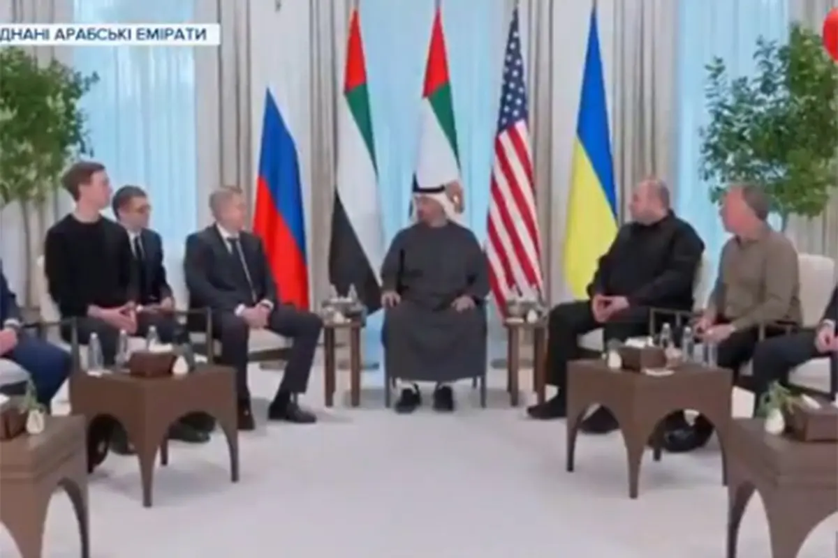 Na video-zapisima se može vidjeti susret čelnika američke, ukrajinske i ruske delegacije sa predsjednikom Ujedinjenih Arapskih Emirata Mohamedom bin Zajedom Al Nahjanom.