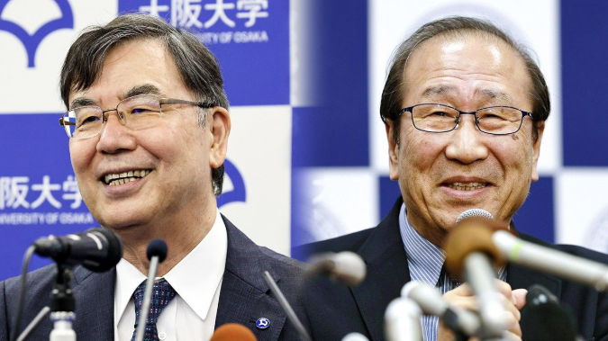 Shimon Sakaguchi i Susumu Kitagawa, obojica 74 godine, tokom foruma na Univerzitetu u Kjotu imali su prvi javni istup od primanja Nobelove nagrade za medicinu i hemiju prošle godine.