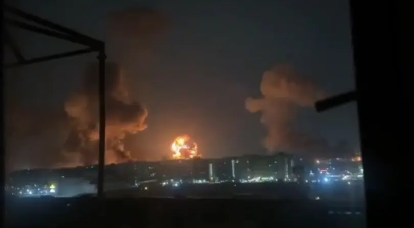 Na snimci se također vide veliki stupovi tamnog dima koji se dižu iznad Teherana u daljini, za koje se navodi da označavaju mjesta napada.