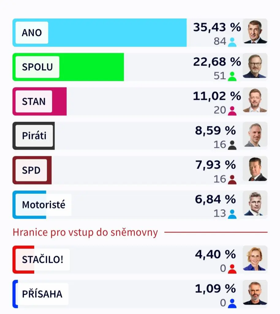 Na ovogodišnjim izborima za Parlament Češke pobijedilo je pokret ANO bivšeg Premijera Andreja Babiša, inače populističkog političara i jednog od najbogatijih ljudi u Češkoj, koje nakon prebrojanih gotovo 94 posto biračkih mjesta ima više od 35,5 posto glasova.