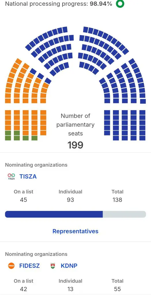 Tisza – 138 (45 s lista, 93 pojedinačno)