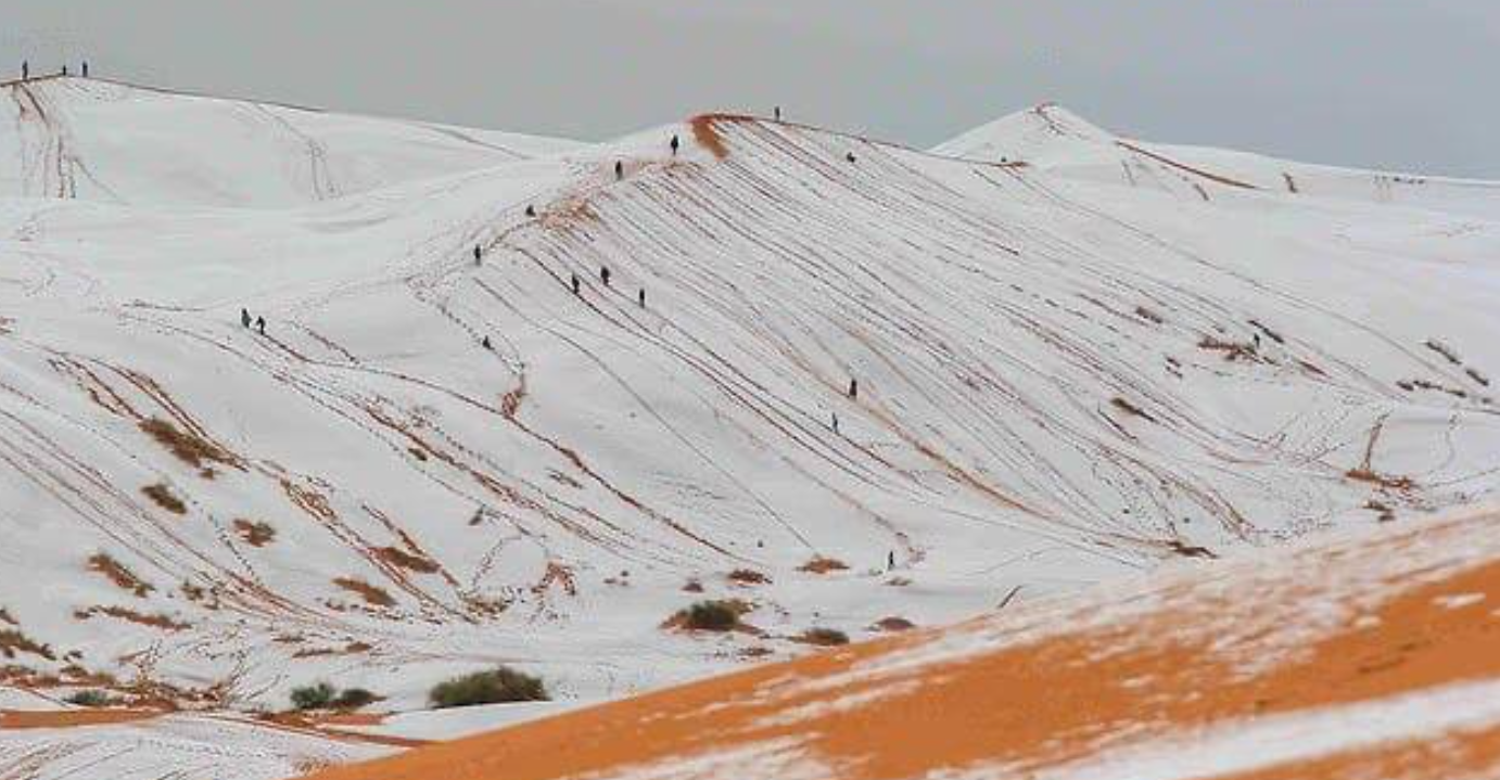 As a result of the snowfall, the orange sand dunes in Algeria turned white, and the temperature in the city of Ain Sefra dropped below zero.