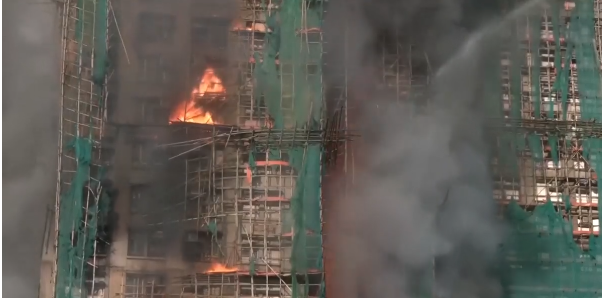 Vjeruje se da se požar proširio kroz bambusove skele na vanjskoj strani zgrada, a hitne službe su na mjestu događaja.